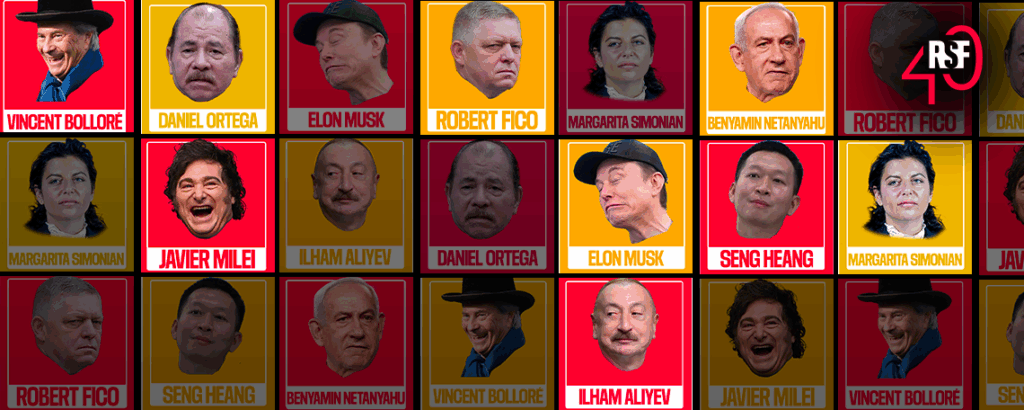 À l’occasion de la Journée internationale de la fin de l’impunité pour les crimes commis contre les journalistes du 2 novembre, Reporters sans frontières (RSF) dévoile les portraits des 34 prédateurs de la liberté de la presse qui, en 2025, se sont violemment attaqués aux journalistes et au droit à l’information. “Que partagent-ils ? Une même détestation de la liberté de la presse. Leurs armes diffèrent, mais leurs objectifs se rejoignent : faire taire les voix indépendantes et piétiner le droit à l’information. Assassinat, emprisonnement, discrédit, propagande, armées de trolls… autant de moyens pour imposer le silence. Dévoiler ces noms en ce jour symbolique, c’est rappeler que l’impunité n’est pas une fatalité : ceux qui piétinent la liberté d’informer doivent être nommés et rendre des comptes.” déclare l’ONG dans un communiqué.